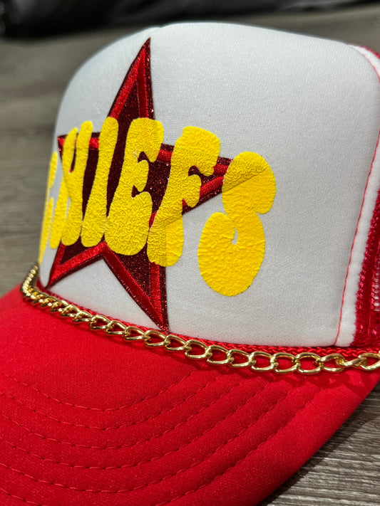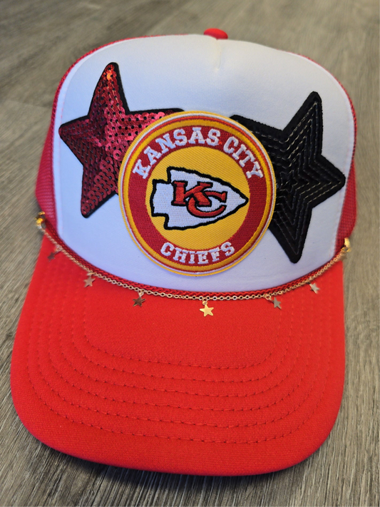 Kansas City Chiefs Red & Black Star Football Trucker Hat