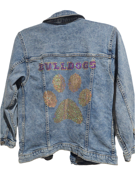 Kearney Bulldogs Spangles Pawprint Football Jean Jacket, L Girls