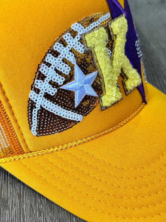 Kearney Bulldogs Purple Star and Sequin Football K Trucker Hat