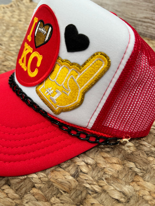 KC Chiefs #1 Sequin Heart Arrowhead Trucker Hat