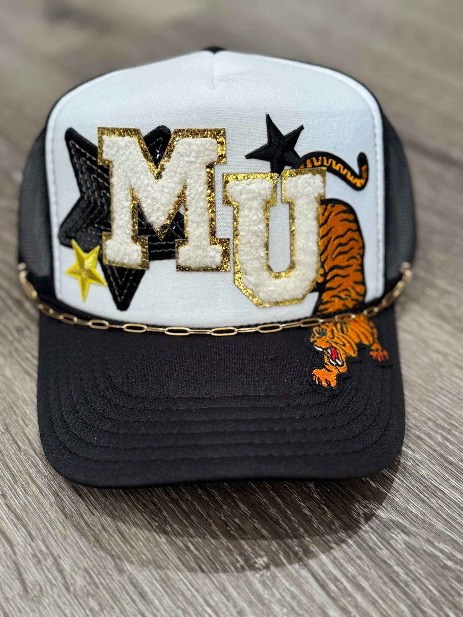 KC Chenille Letters with Sequin Star & Heart Patch Trucker Hat